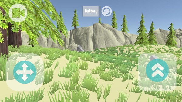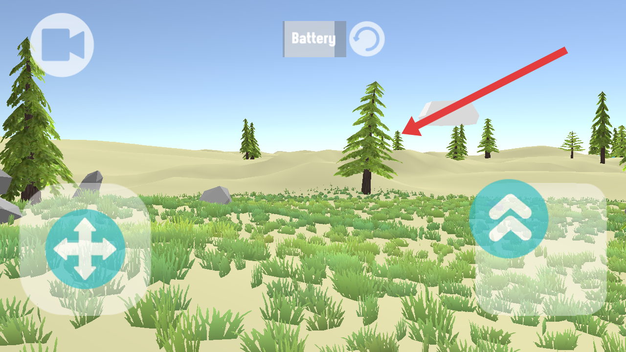 3、进入草原森林的区域,可以操控无人机朝箭头指向的树木方向行驶,近距离的进行探索。