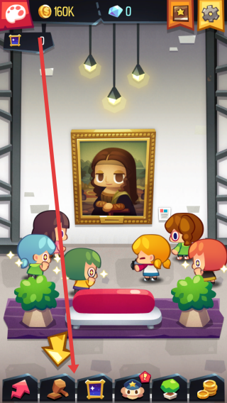 1、在进入博物馆界面时,可布置一些优秀的展品吸引游客参观,借助游客互动积累金币等资源,点击查看。