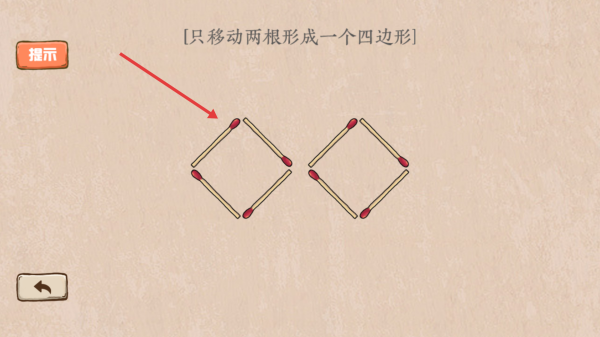 1、点击开始游戏进入关卡选择优先选形成一个四边形关卡看清提示只移动两根火柴。