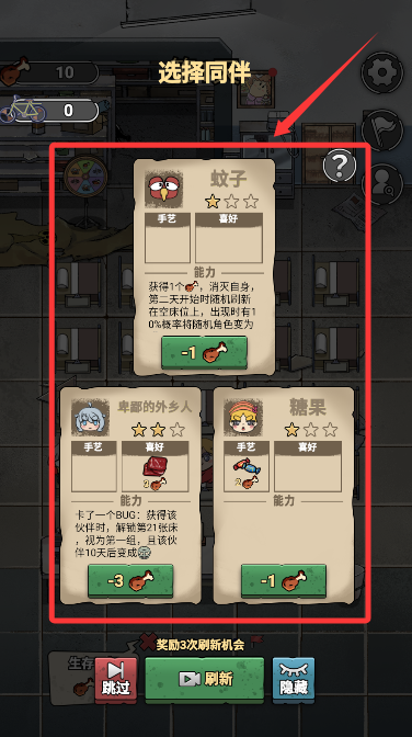 2、进入“选择同伴”界面,依据角色能力、消耗,选合适的同伴携手求生。