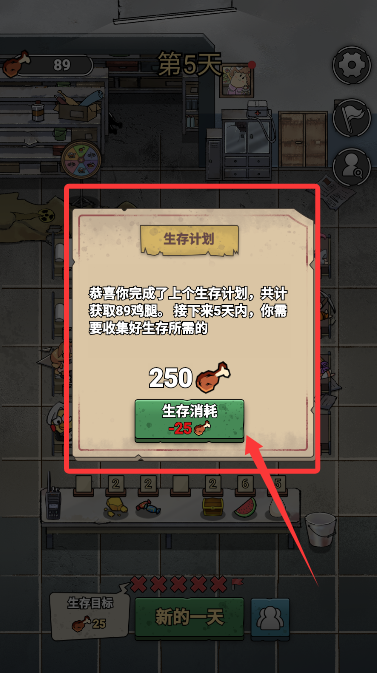 4、完成首个阶段计划,依据新的“生存计划”,准备收集250鸡腿继续挑战。