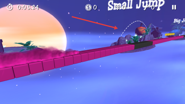 1、点击Play进入Level01操控蜗牛沿粉色路径前进留意Small Jump提示提前准备跳跃。
