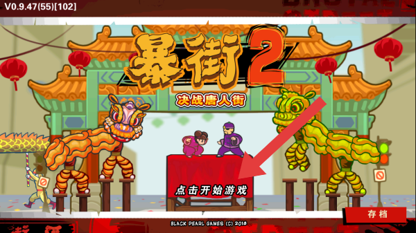 1、按钮文字点击开始游戏,方可进入,画面呈现中式风格场景,有舞狮、传统建筑等元素。