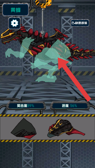 2、功能按钮极速拼装,进度数据契合度39%、进度56%,还有待组装的机甲部件下方两个机甲零件。