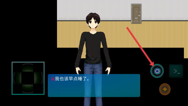 2、在角色场景中,通过点击右侧圆形交互按钮,推进剧情发展,触发新的对话或场景变化。