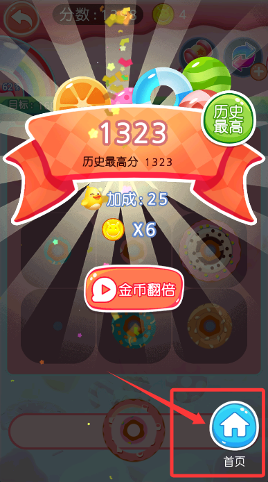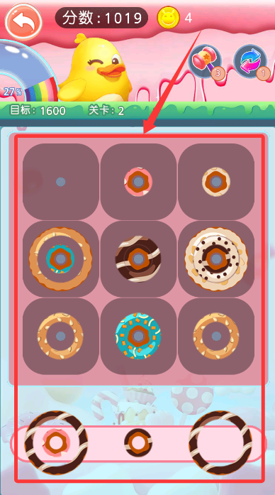 2、将三个一样的甜甜圈连成一线即可消除,获得相应积分奖励。