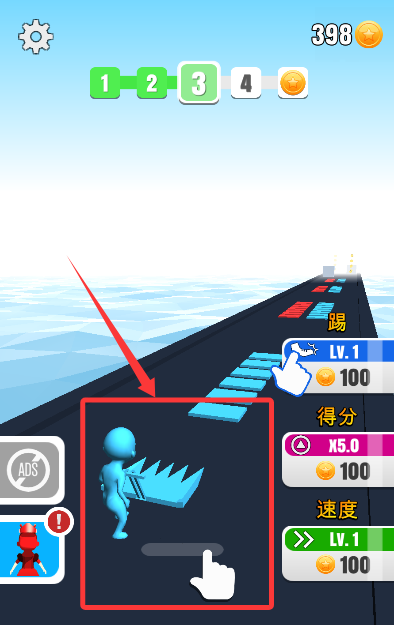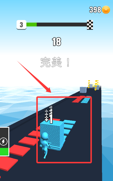 1、基础堆叠模式,要求玩家在规定区域内收集砖块,精准控制角色移动路线是关键,错误的颜色选择会导致砖块减少。
