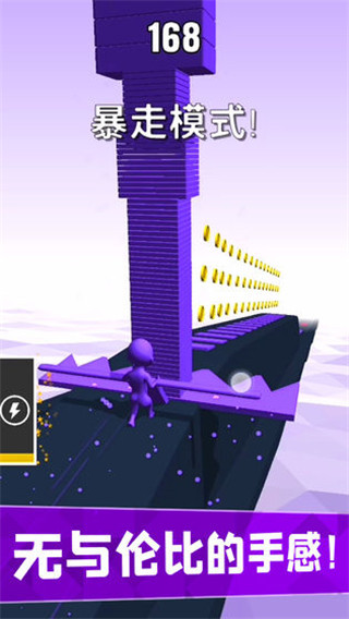1、创新的色彩堆叠玩法,将跑酷与积木搭建完美结合,需要精准控制角色收集同色砖块,通过堆叠技巧创造高耸的建筑。