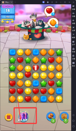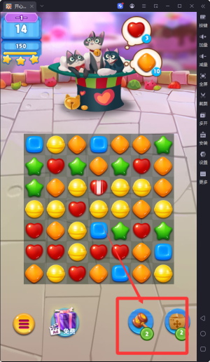 1、经典三消机制,通过交换相邻糖果形成消除组合,完成关卡目标获取装饰道具和猫咪服装,体验基础乐趣。
