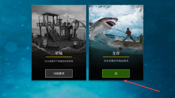 3、积累物资升级木筏如造锤子扩建探索海洋避开危险如鲨鱼解锁砂箱模式需达10级。