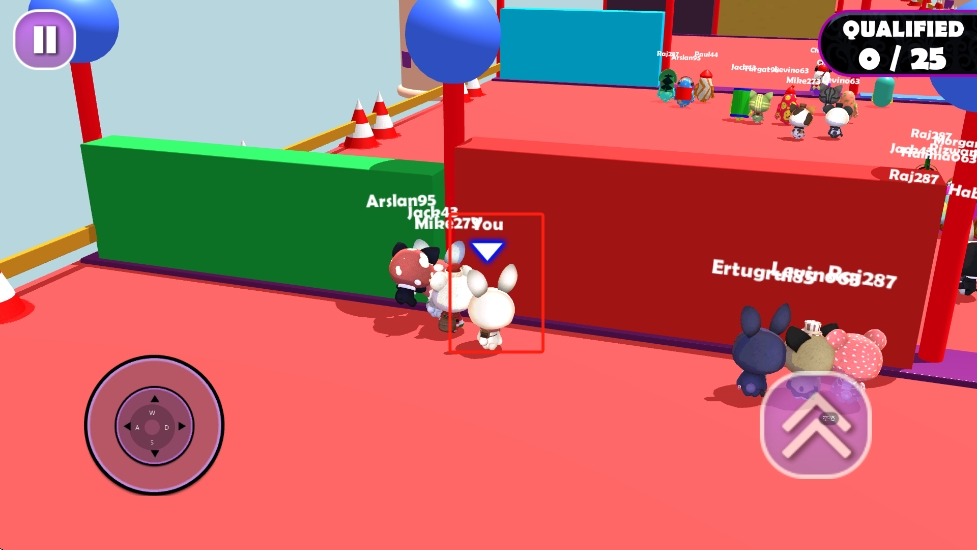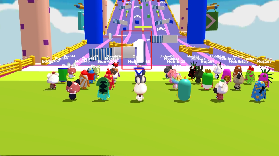 2、关卡中会遇到滚动的障碍物和突然塌陷的平台,需灵活跳跃躲避,同时留意其他玩家的动向,避免被碰撞出局。