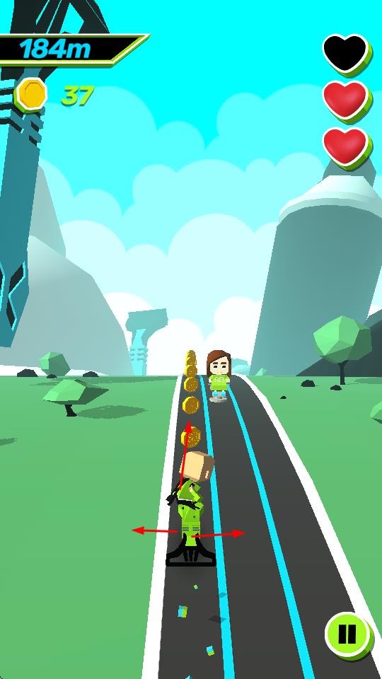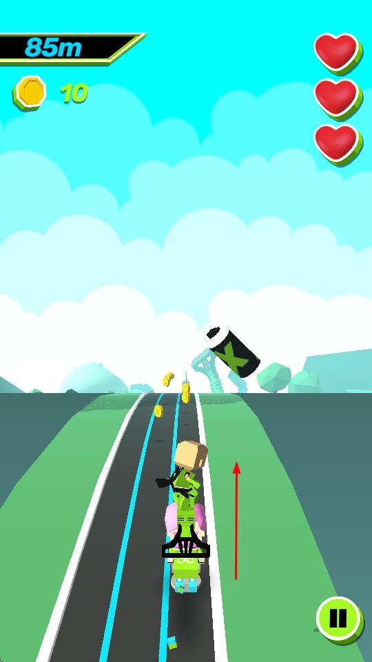 1、进入游戏后,操控角色在赛道上前进,通过收集金币来增加分数,同时注意躲避障碍物,如黑色带有标识的物体等。