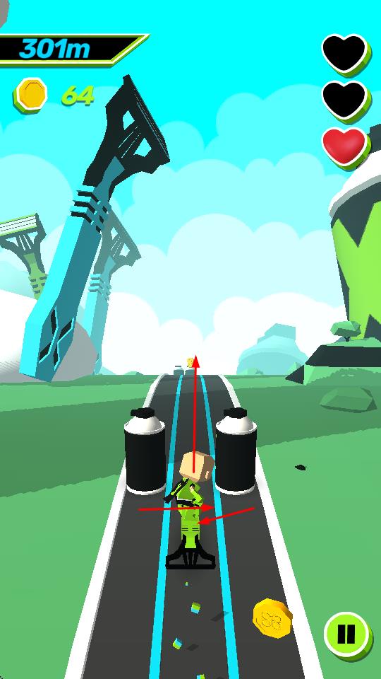 2、拾取金币避免掉血:跑酷过程中留意金币位置并拾取,同时时刻注意陷阱与障碍物,避免与之碰撞导致血量减少,一旦血量耗尽则游戏失败,需重新开始挑战。