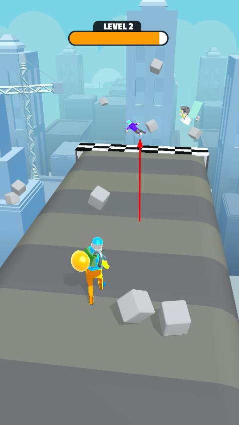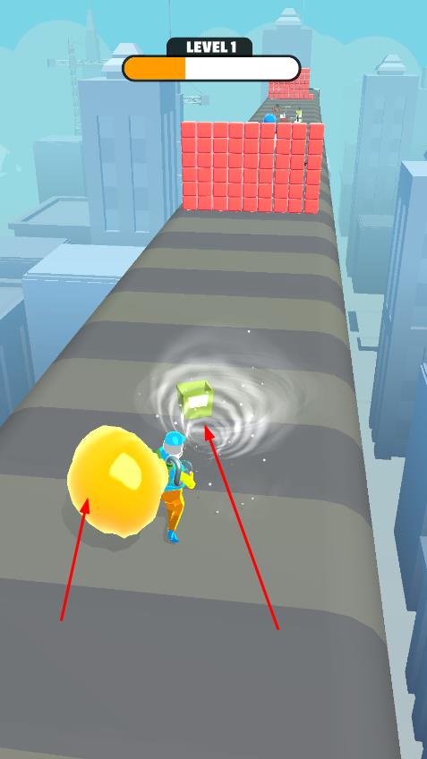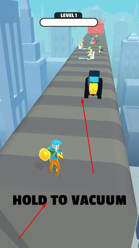 1、在关卡1,长按屏幕HOLD TO VACUUM启动吸附,吸取路上物品,如灯,人、方块。