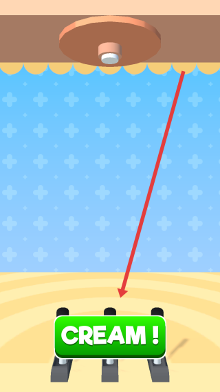 1、根据箭头指向,点击绿色CREAM!按钮,准备启动冰淇淋制作流程,准备挤出奶油。