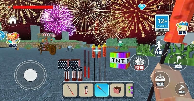 2、解锁更多烟花爆竹道具,尝试在场景中搭配不同烟花,调整燃放时间与顺序,设计简单的烟花序列,感受多种烟花同时绽放的视觉冲击,积累创作经验。