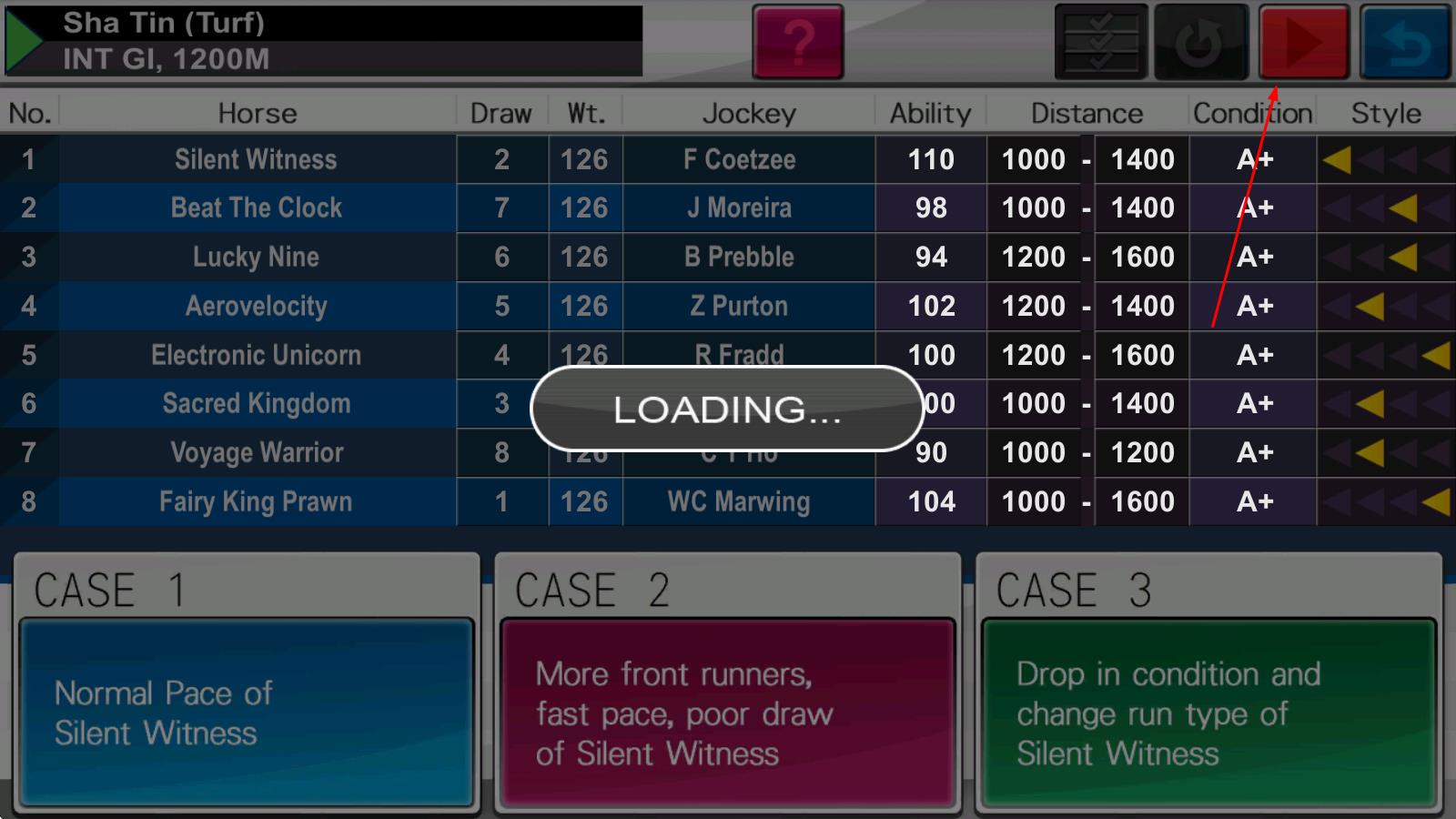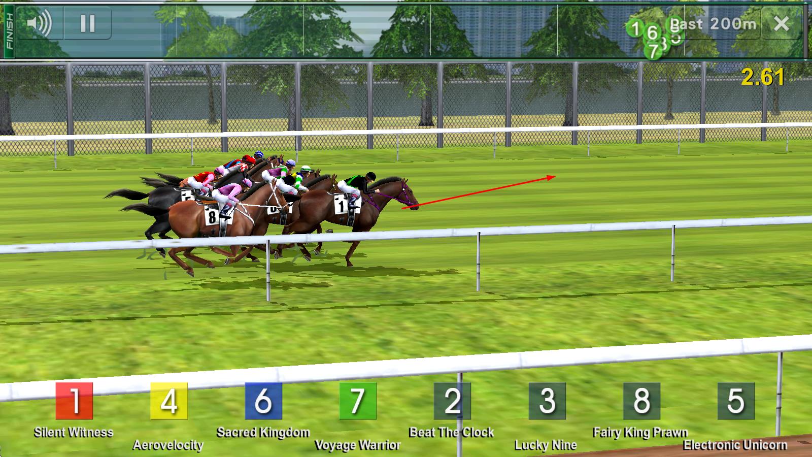 2、参与赛事时,根据马匹特性、场地及天气,制定甩脱、占先等即时战术,可选择全程观看比赛或快速结算,在竞技中积累经验提升马匹实力。