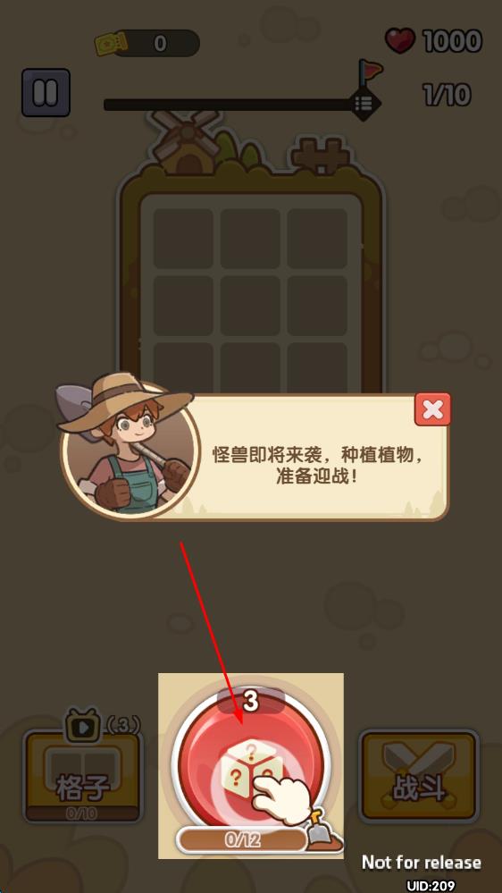1、点击开始挑战进入关卡,选择初始植物种植,点击中间骰子根据点数获取植物,通过合并提升等级,开启塔防战斗的第一步。