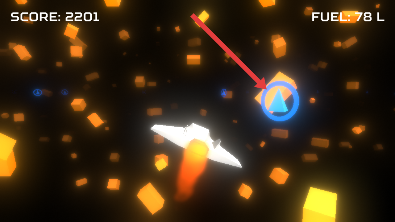 1、需要操控自己的飞船驶向蓝色三角图标并收集,获取关键的游戏资源,增加局内的游戏积分。