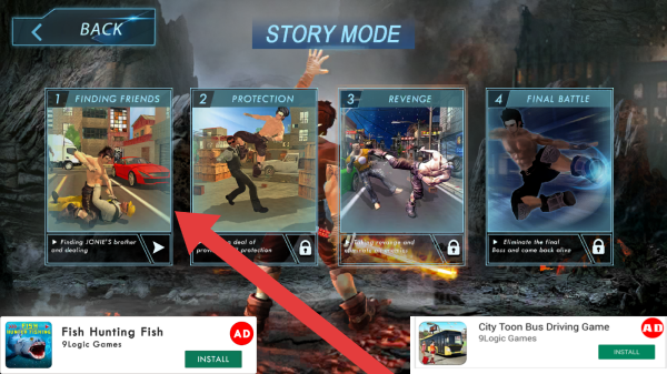 1、下方有广告及其他玩法推荐FishHuntingFish、CityToonBusDrivingGame,带INSTALL按钮。