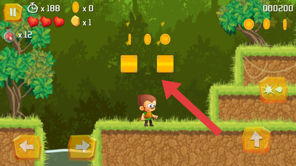 3、操作按钮左右移动、跳跃,玩家可根据情况使用正确的按钮,目标是拾取头顶的金币。