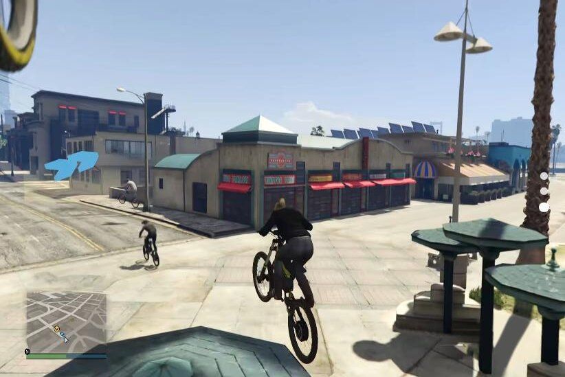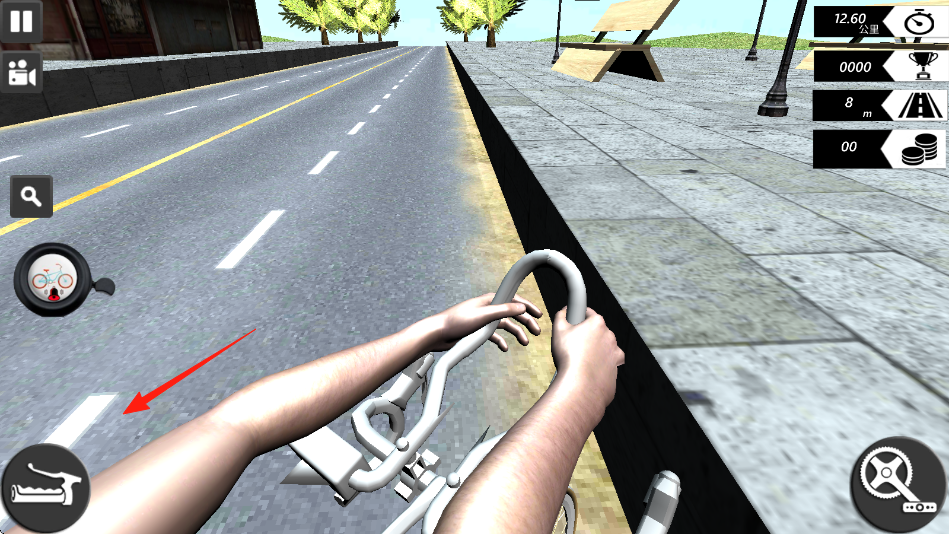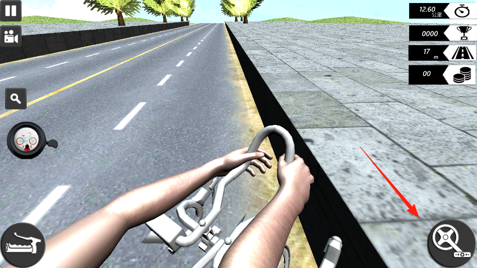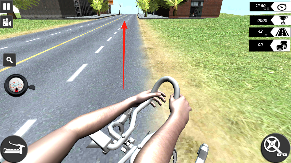 3、沿箭头指向的道路延伸方向,骑行探索,留意场景变化,完成模拟驾驶任务。