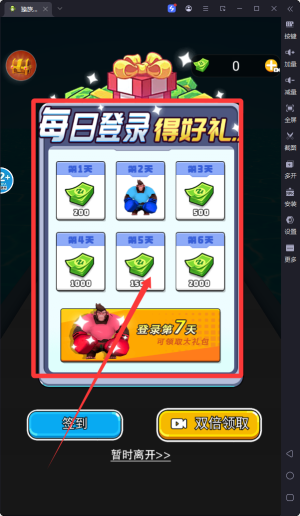 1、每日上线第一时间要查看您的签到奖励哦,得到大量资源,方便后续游戏体验哦。