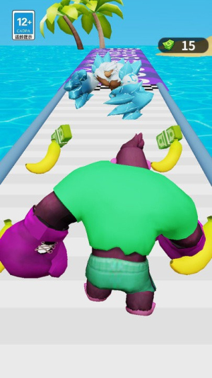 1、资源收集系统,玩家需要控制猿猴收集香蕉和金币,这些资源用于提升能力、解锁皮肤和增强战斗力。
