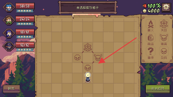 3、进入迷宫地图,留意界面提示,如未选择有效格子,规划路线,优先避开头目等危险标识,朝着安全区域前进。