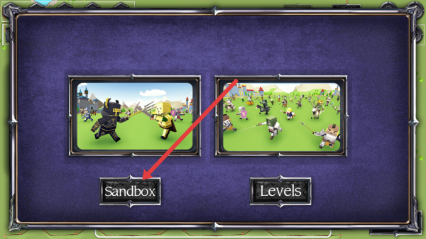 2、在模式选择界面,可以按照箭头指示,点击Sandbox模式,进入自由沙盒玩法,体验自定义战斗。
