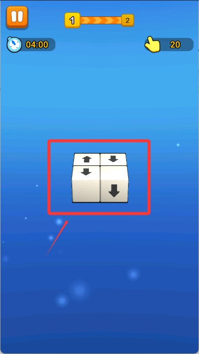 2、开始游戏后方块会跟随箭头方向移动,我们需要按顺序点击。