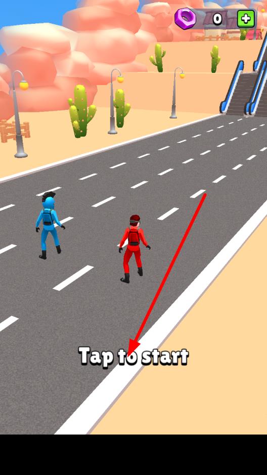 1、基础形态操控:点击“Tap to start”启动跑酷,通过滑动或点击屏幕精准控制角色跑步移动方向,躲避初期简单障碍,逐步适应跑酷基础节奏。