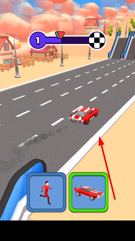 2、跑酷进程里,遇到车辆切换标识区域,点击对应车辆图标完成形态转换,借助车辆速度、特性挑战关卡,收集沿途增益道具。