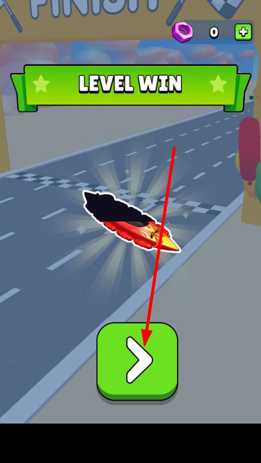3、顺利抵达终点完成当前关卡,点击绿色箭头按钮进入下一关,随着难度逐步提升,需组合车辆、灵活运用道具,应对复杂路况。