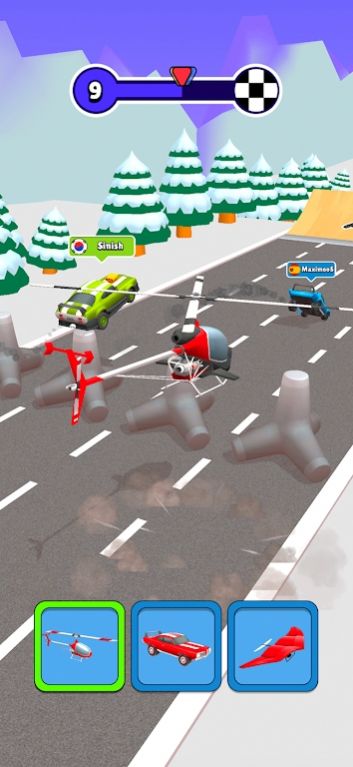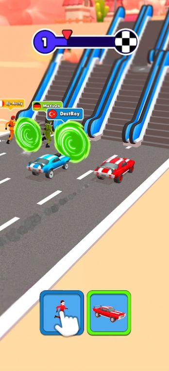 2、形态切换与车辆运用:在指定车辆切换区域,点击对应车辆图标完成形态转换,利用车辆优势突破复杂路段,同步收集道具、推进任务进度。