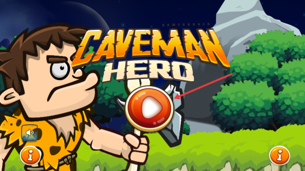 1、点击游戏标题界面中武器上的红色按钮,进入Caveman Hero游戏主流程开启冒险。