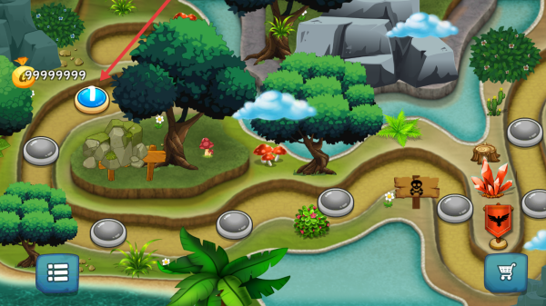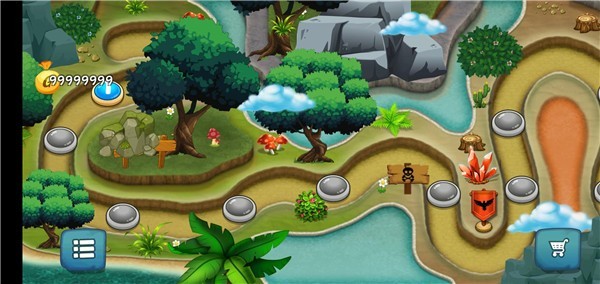 2、在地图界面选择标有9999999金币的蓝色圆形关卡图标,进入对应关卡挑战内容。