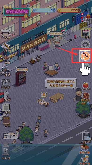 2、从主界面进入后厨区域,开始准备餐厅的特色菜品配置。