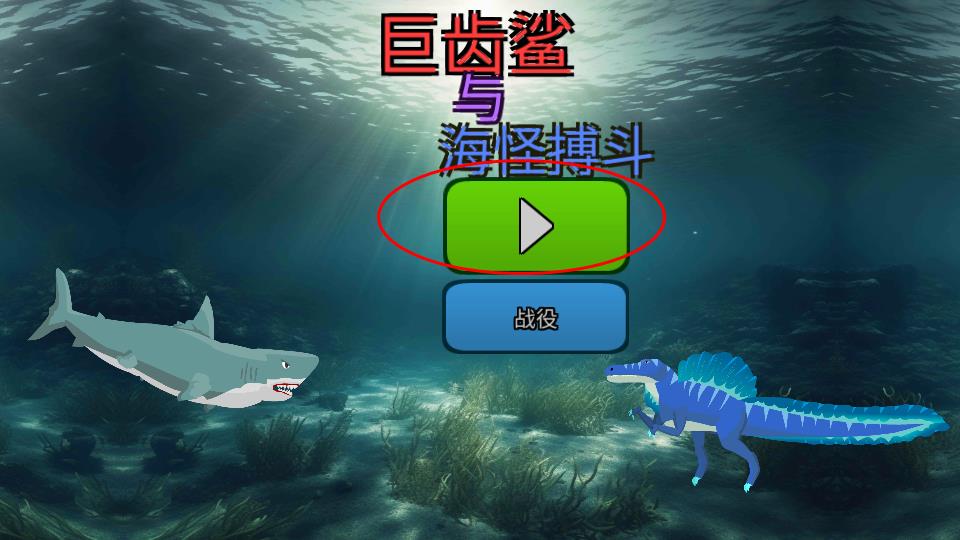 1、点击绿色播放按钮开启游戏,进入海洋战斗场景,操控巨齿鲨直面海怪,开启刺激对决流程。