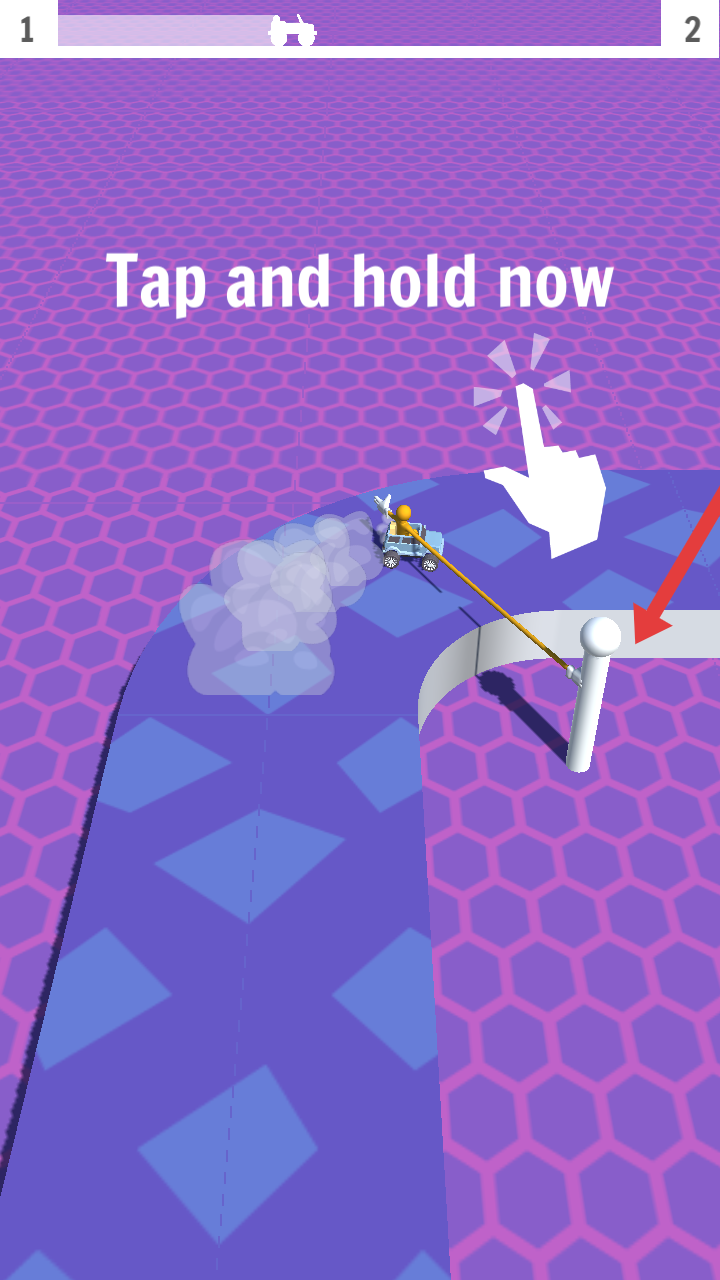 1、游戏过程中,按照提示Tap and hold now点击并按住屏幕,操控小车绕桩行驶,控制小车方向。