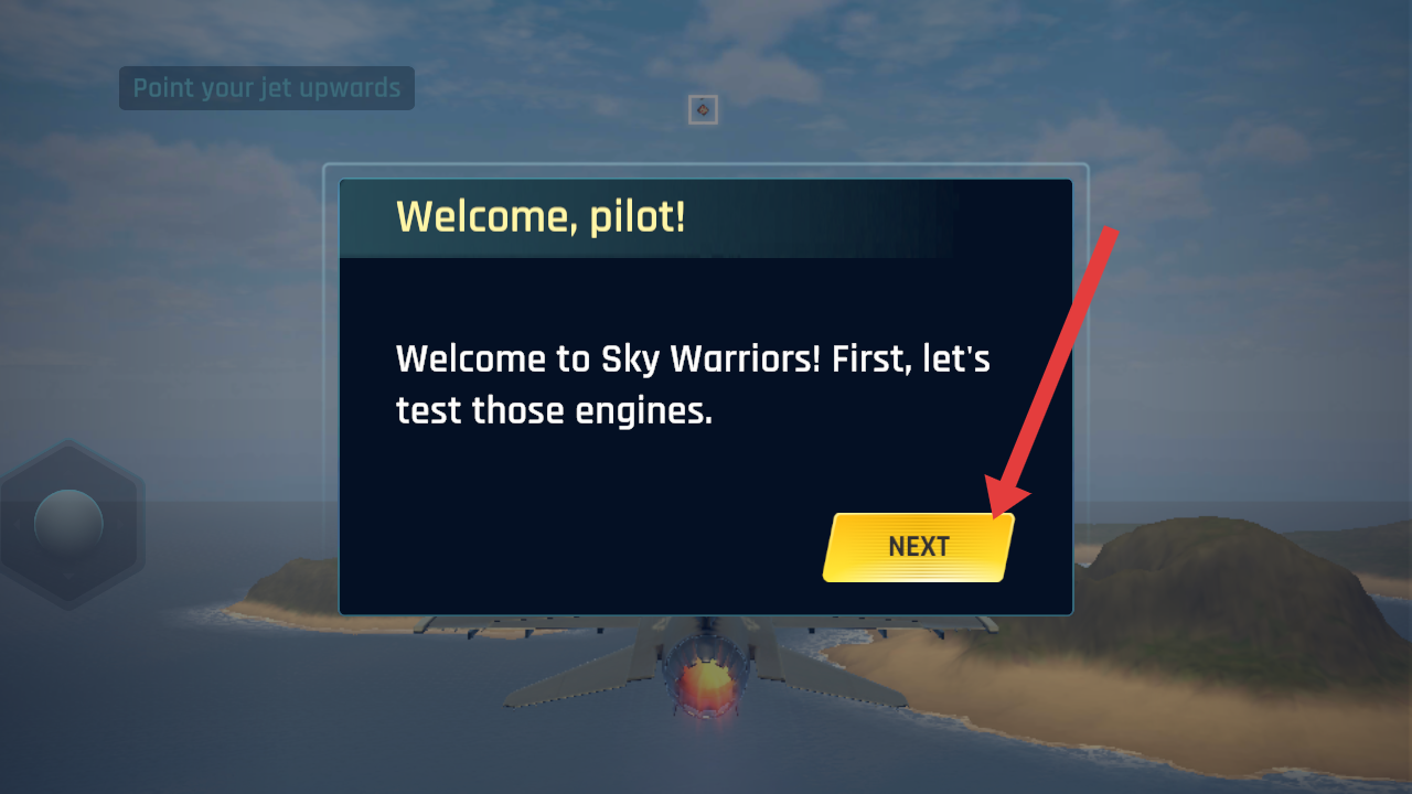 1、进入天空战机冲突的游戏,需要点击NEXT按钮,开启引擎测试环节,推进新手引导流程。