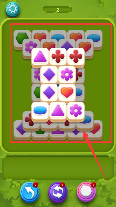 1、启动消除挑战,需快速扫描盘面,找出相邻的相同图案方块组合。