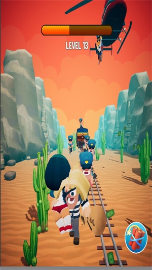 强盗快跑是一款以跑酷为核心玩法的动作冒险手游,延续了跑酷题材的热门魅力,玩家在游戏中化身为掠走人质的强盗,需扛着美女不断向前奔跑,摆脱身后警察的追捕,一旦失误就可能落入法网,紧张刺激的逃亡过程带来别样的游戏体验。