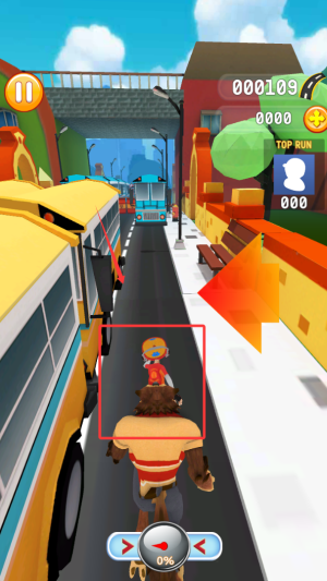 4、通过虚拟按键控制角色移动,在跑酷过程中躲避障碍并收集奖励。