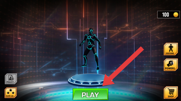 2、点击PLAY开始游戏的按钮,是开始前选择操作的界面,角色造型科技感十足,背景为科幻风格场景。