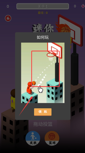 1、初次进入游戏时跟随系统引导熟悉基本操作,了解投篮力度与角度的控制方法。