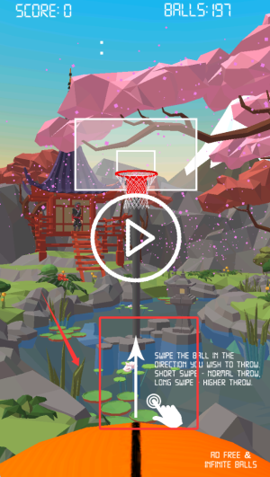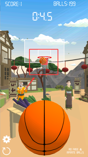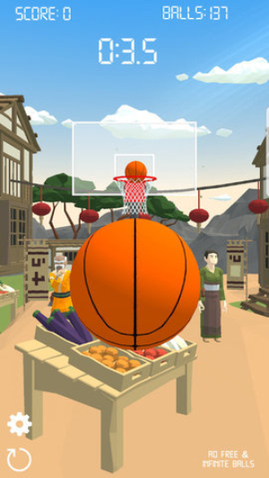 2、通过触屏滑动控制投篮角度与力度,在限定时间内完成指定命中次数即可通关。