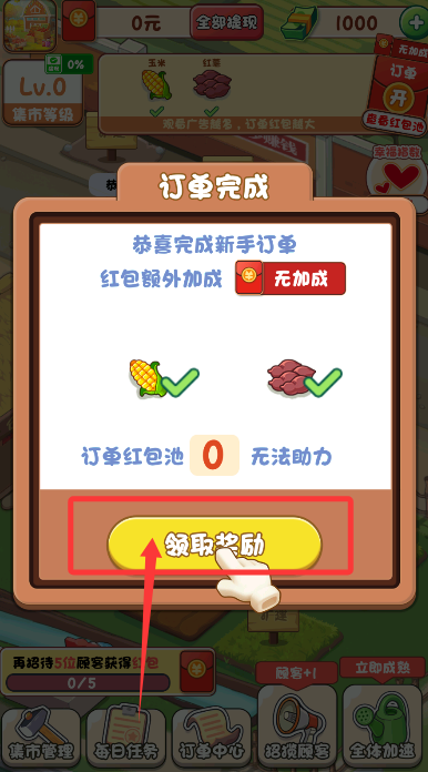 4、完成农产品订单后,系统自动结算任务,点击即可获得丰厚报酬。