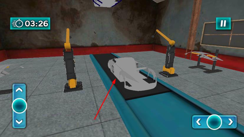 1、在关卡选择界面点击LEVEL1,进入汽车工厂关卡,开始汽车组装任务,屏幕显示倒计时。