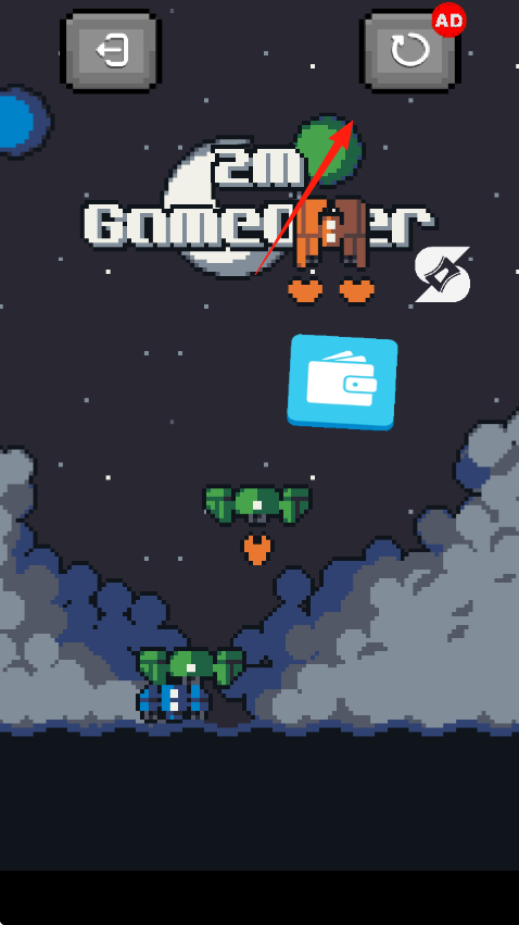 2、通过界面按钮返回、重置等,切换模式、重启关卡,利用钱包功能可能涉及资源管理,升级飞船、解锁道具。